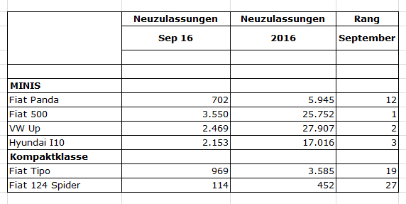 genauso wie der Fiat 124 Spider einen Platz in der Rangliste gut.
