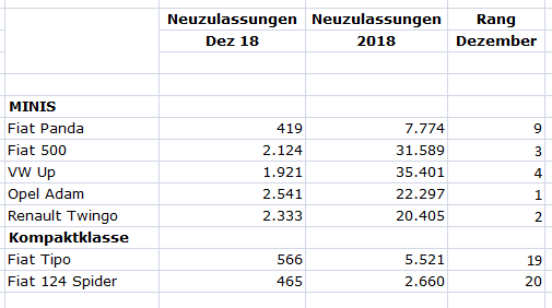 Schlechterer Monat für Panda und 500, VW Up sogar nur Platz 4 bei den Minis!
