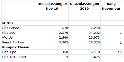 Fiat 500 mit einem Minus von 10% gegenüber dem Vormonat, der 1. Platz