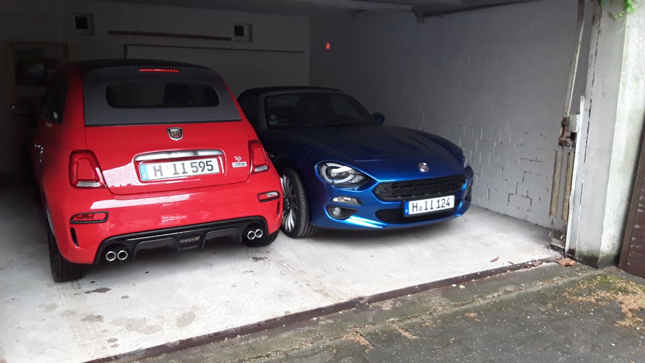 Mein 124Spider: Lusso - Italia Blu - Schalter- Premium - Radio - Sicht - innen schwarz - Bose - Rückwärtsfahrkamera - Popo-Heizung - Stubby-Antenne - ATH Windschott - Gepäckträger